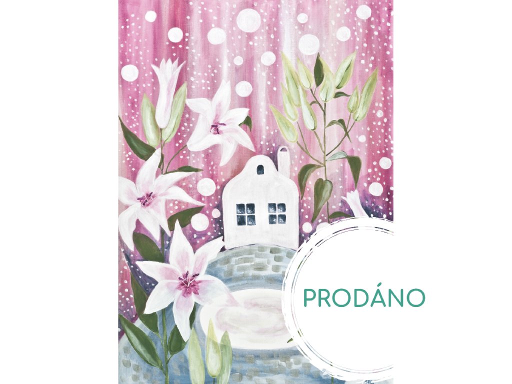 Provedení: malba na plátně, bílý dřevěný rám.