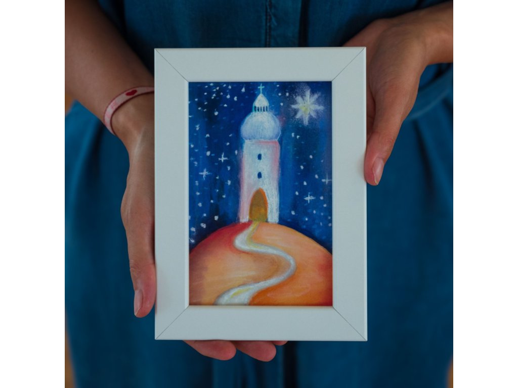 Pomáhá aktivizovat touhu tvořit v nejširším slova smyslu. Velikost s rámem: 52 x 62 cm Provedení: malba na plátně, bílý...