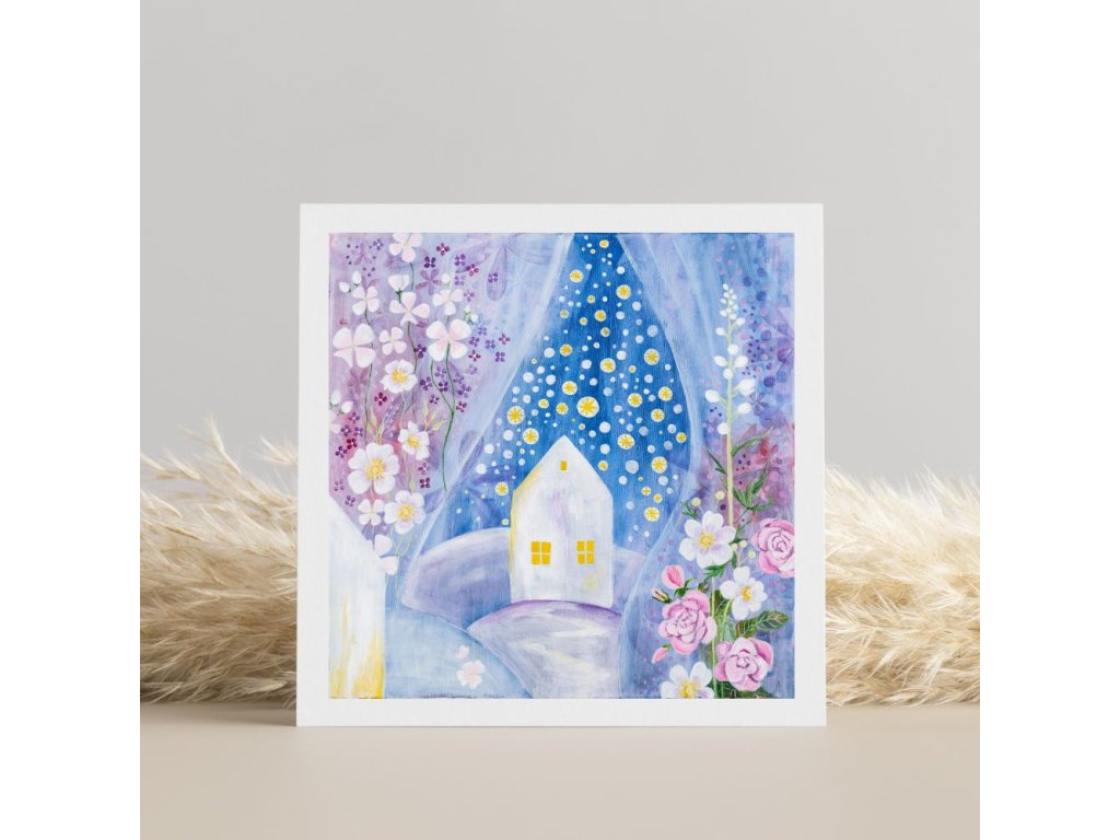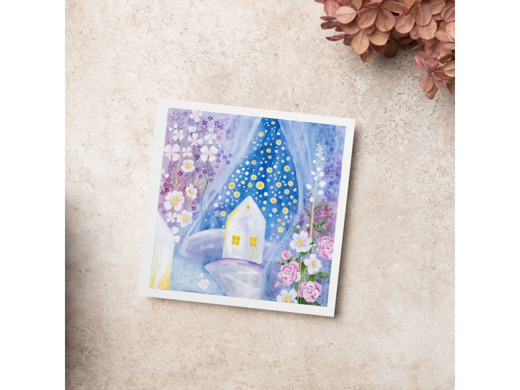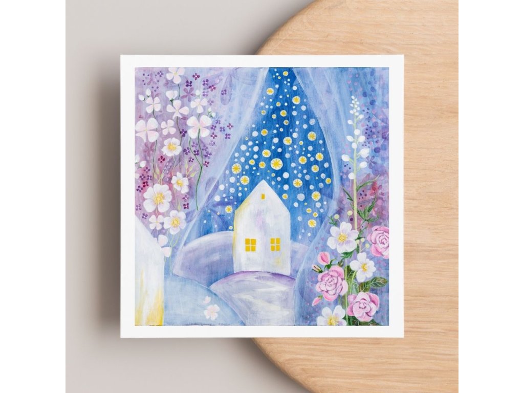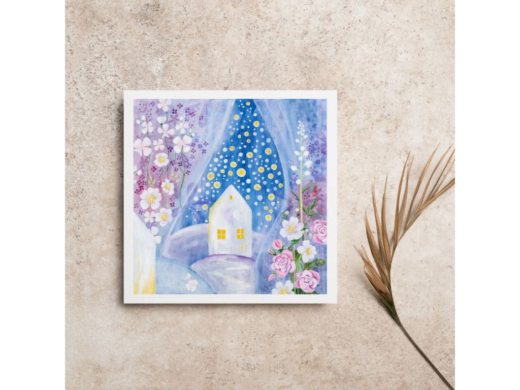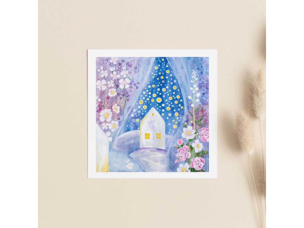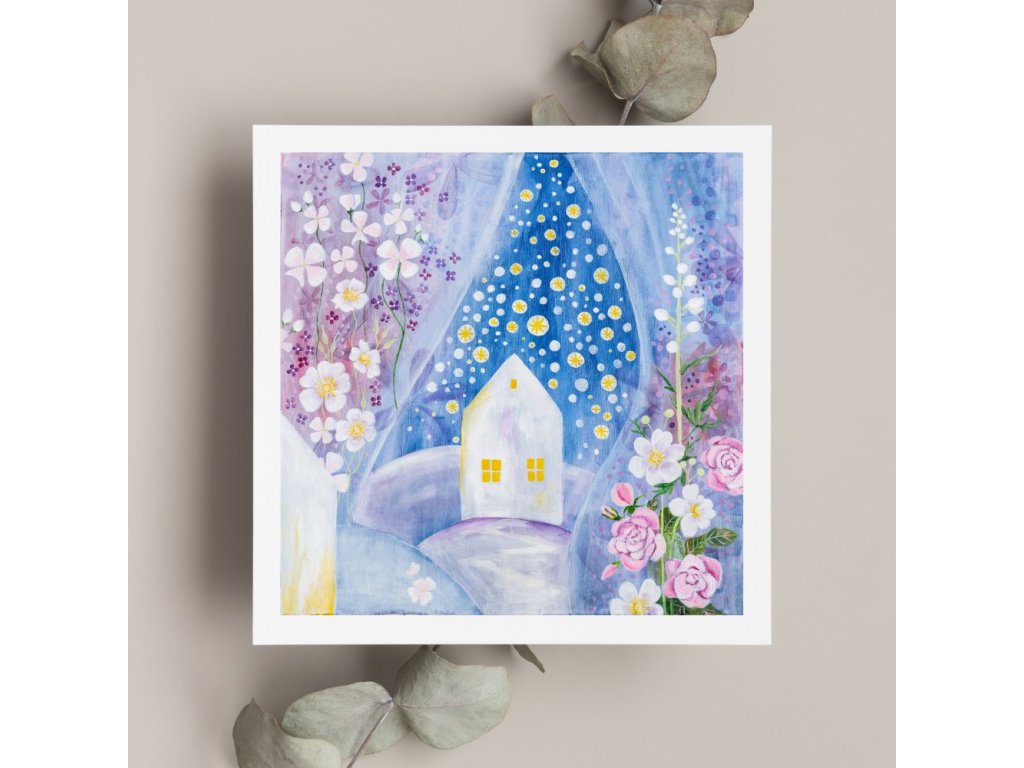 Zimní snění o letních květech - obrázek s bílým okrajem - 21x21cm