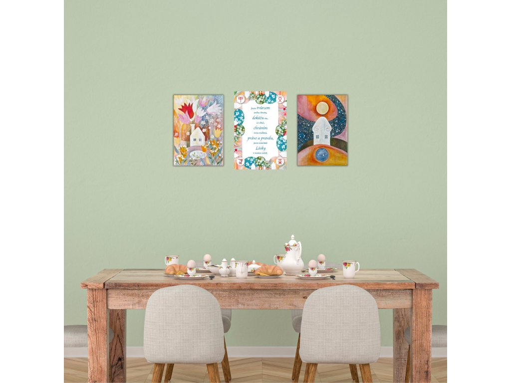 Obraz podporuje rodinnou sounáležitost, domov, harmonizaci, zázemí. Univerzálně harmonizační obraz – ideální jako dárek....