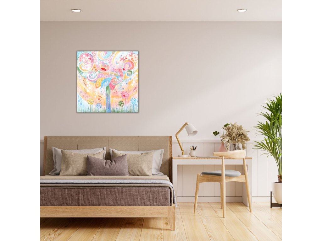 Širokospektrální obraz, který otevírá v našem podvědomí ta nejhlubší tajemství o zrodu a významu stromů pro náš život. Probouzí v člověku hlubinný optimismus, vnitřní přesvědčení, že dobro nejde zastavit a že vše směřuje k pozitivnímu cíli. Univerzálně harmonizační obraz – ideální jako dárek a lze ho umístit kamkoliv dle svého pocitu.
