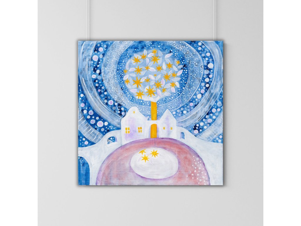 Reprodukce originálu na plátně – obraz Zimní pohádka vnese do domova harmonii, pozitivní energii a vánoční čaro. Ideální vánoční dekorace či dárek.