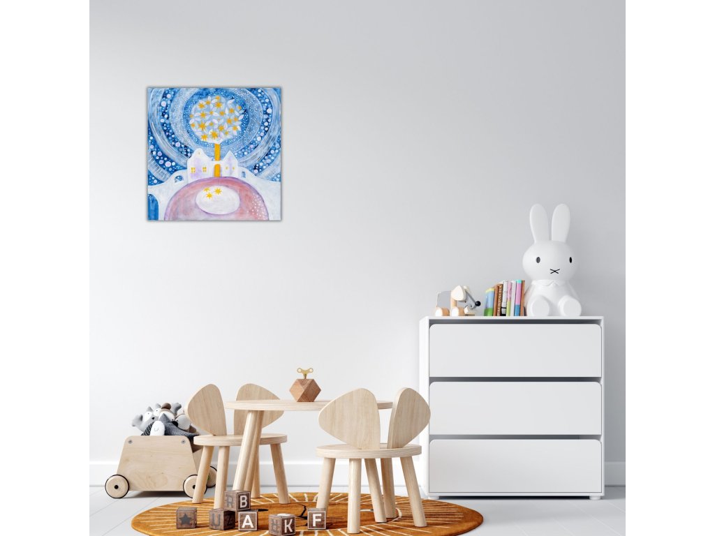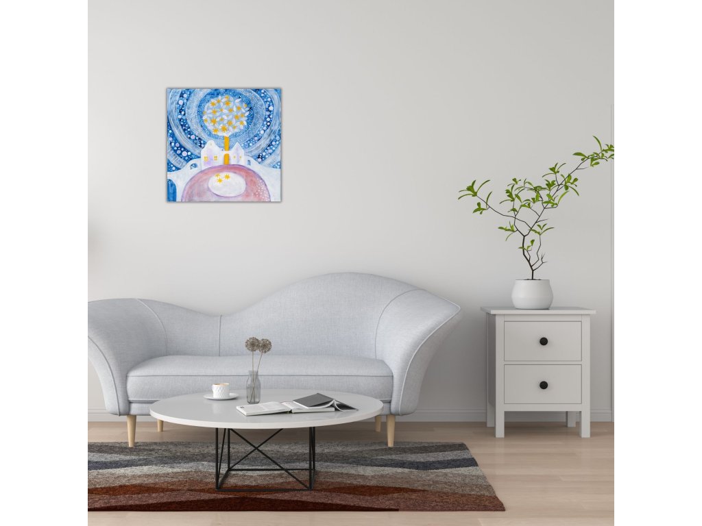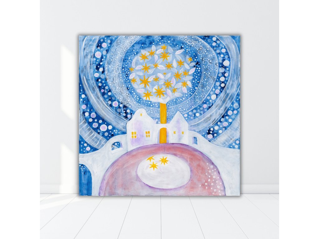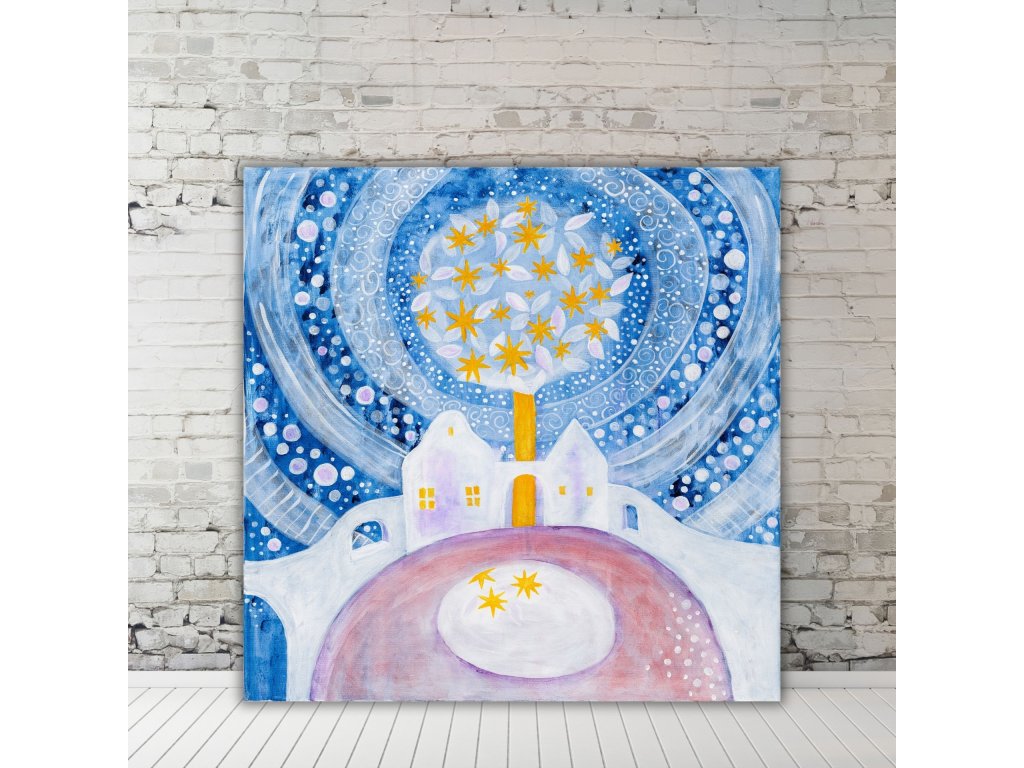 Větší reprodukce originálu na plátně – obraz Zimní pohádka přináší harmonii, radost a víru v zázraky. Skvělá dekorace, dárek a inspirace pro vánoční období.