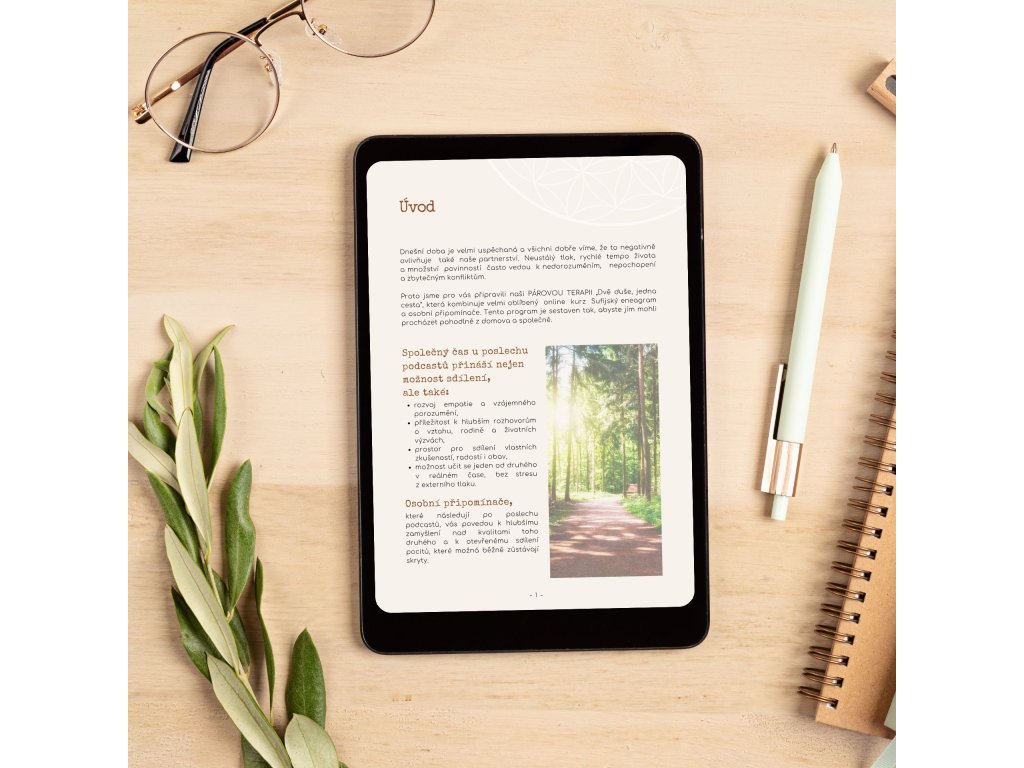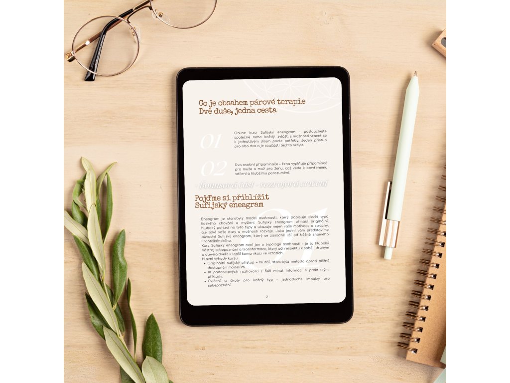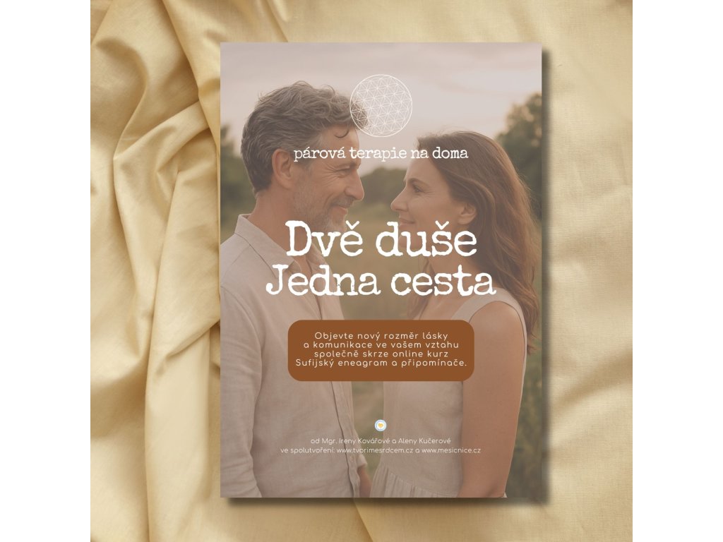 Objevte nový rozměr lásky a komunikace ve vašem vztahu s Párovou terapií na doma: Dvě duše, jedna cesta. Tento balíček zahrnuje online kurz Sufijský eneagram se speciálním postupem pro studium v páru, tištěné osobní připomínače a bonusová cvičení, které vám pomohou prohloubit vzájemné porozumění a posílit váš partnerský vztah z pohodlí domova.