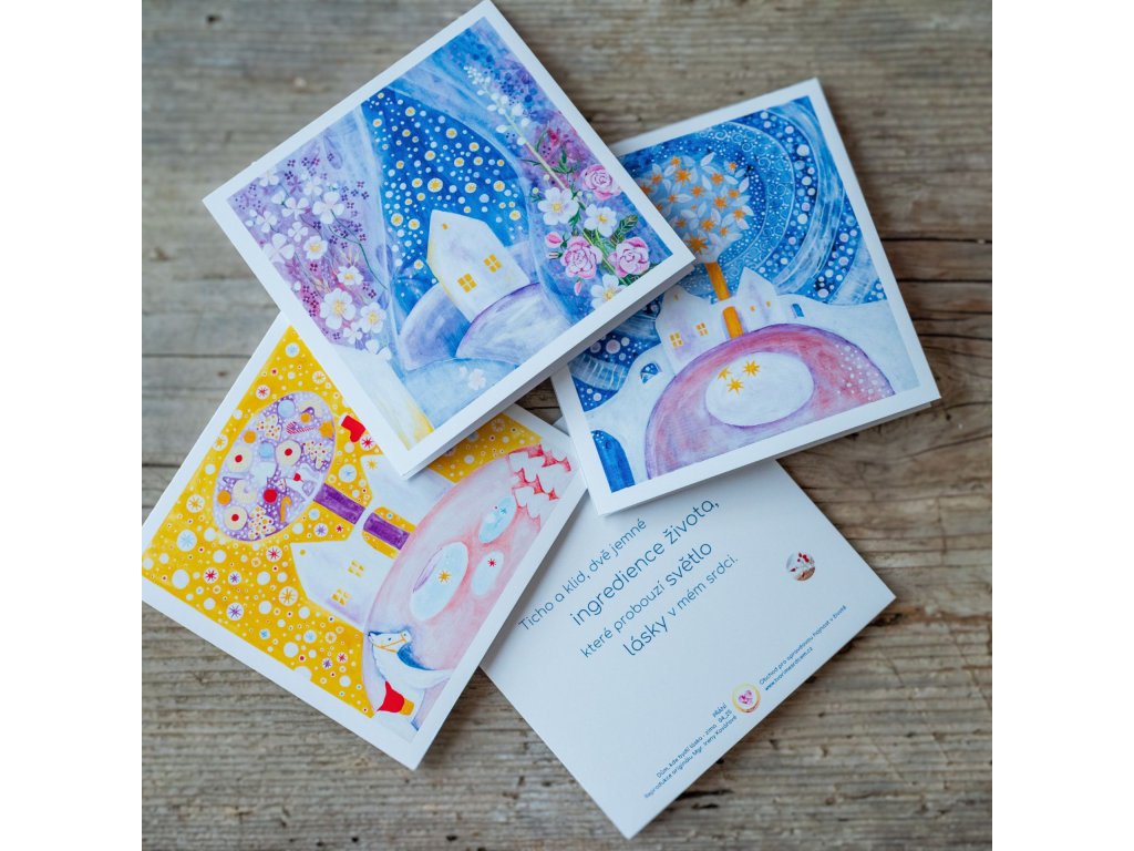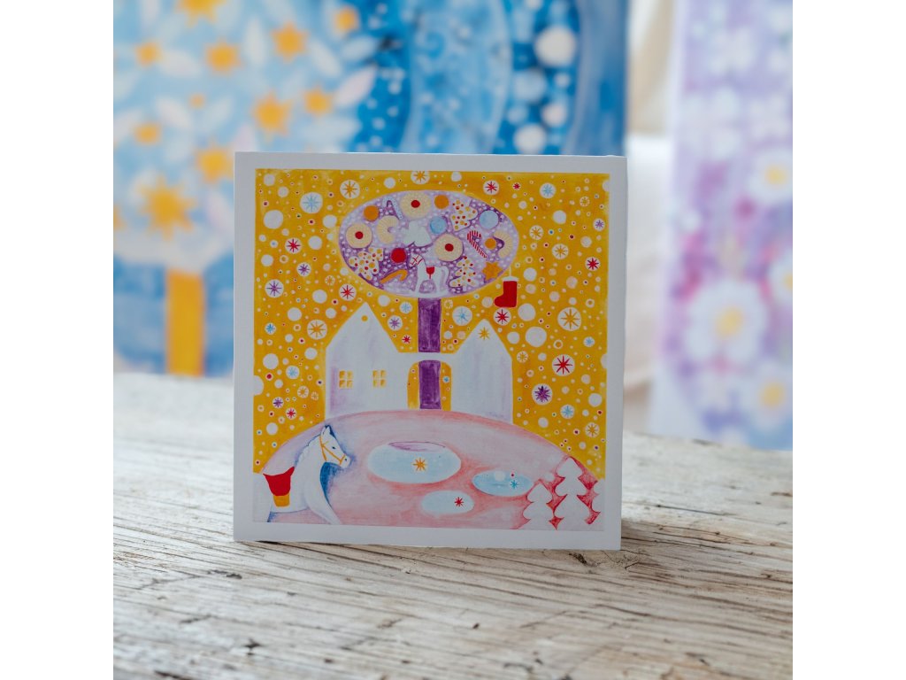 Provedení: Toto přání je tištěnou reprodukcí originálního autorského obrazu, precizně vyhotovenou na luxusním papíře, velikost 13×13 cm. Přání je prodáváno bez obálky.